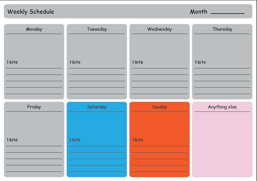 스케줄러도 만들어보았다. 솔직히 말하자면 허접해보이지만.. 나중에 위클리 스케줄러가 필요하면 사지말고 내가 직접 입맛대로 만들어서 쓰면 좋을 것 같다는 생각을 하였다.
